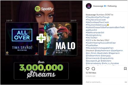 The list, put together by a panel,ranked her track ”All Over” at No 17. Sharing a screenshot of her streams on Instagram,she threw subliminal shots with quite a number of hastags.She wrote