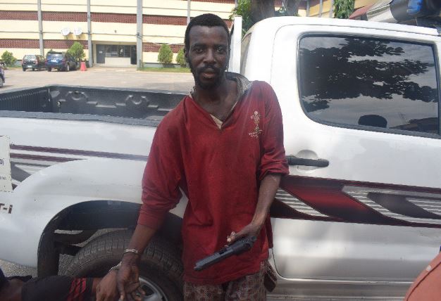 Found on him was a black toy pistol replica of Barreta pistol. He claimed to be Oyahere Johnson, 35, from Port Harcourt. He said he has been using the toy gun to rob in the area.