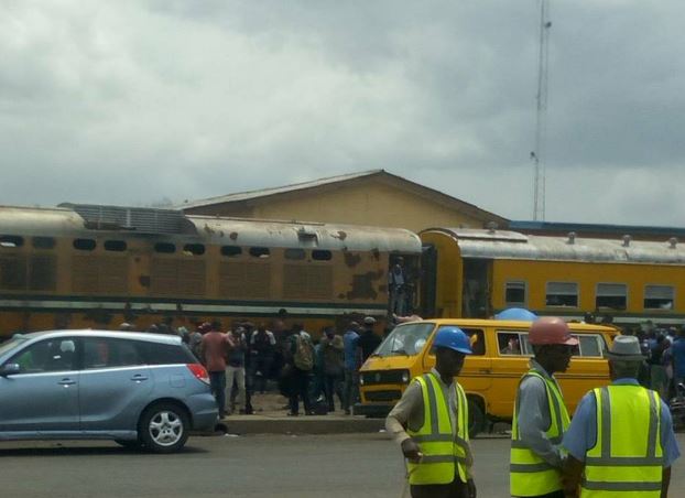 An unidentified young man was killed by a passenger train at Ikeja, Lagos. The man was standing on the rail track oblivious of the fast approaching train. The Ogun-Lagos-bound mass transit train just left Agege Train Station when the accident occurred. See Graphic photo below: