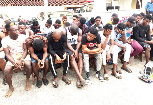 He said, “The DPOs stormed the venue around 2am. On arrival, young men, numbering over 80, were met in a hall taking different types of drinks, including Tramadol and Shisha laced with substances suspected to be marijuana. As soon as they sighted the police, they ran in different directions. However, the team arrested 57 of them.