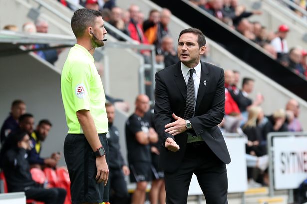 Lampard left his technical area in the 77th minute of Saturday’s Championship clash at the New York Stadium and walked 20 yards down the touchline to speak to the referee’s assistant.