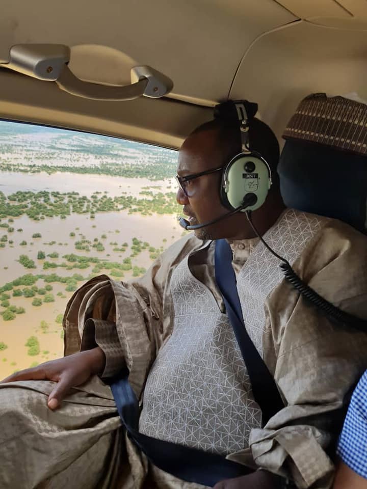 Gov Sani-Bello who flew in Police Helicopter in order to have aerial view of the affected communities and also assess the impact of the flood, call for Federal Government Intervention. Over 50 communities were affected.