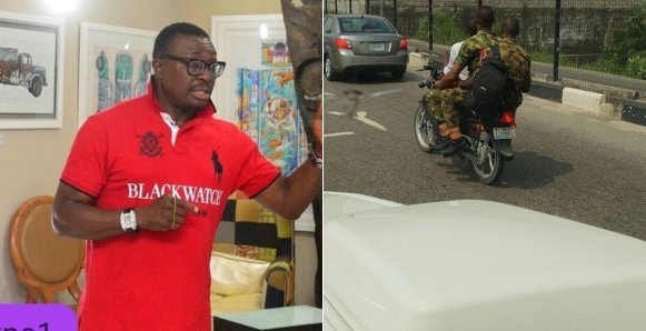 Veteran comedian, Alibaba took a photo of two soldiers rising on the same bike without helmets and he criticized them for it.