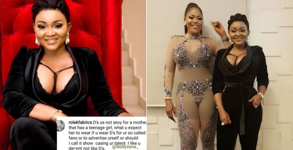 Serious insults are presently being hurled at Mercy Aigbe after she rocked a cleavage-baring outfit.