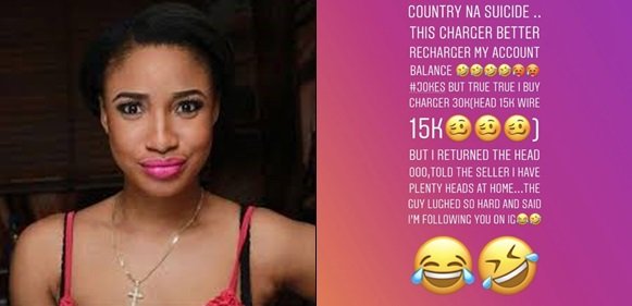 Actress Tonto Dikeh took to Instagram to cry out after she purchased an original iPhone charger for N30,000. The actress revealed she was forced to give back the head of the charger and take only the cord. She used the opportunity to lament about the state of the Nigerian economy .