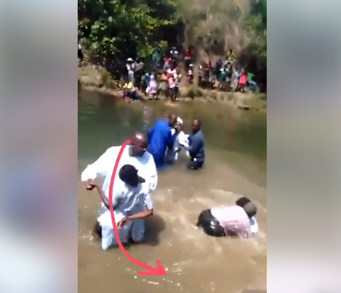 The incident which was captured on camera, saw a lady attack a pastor/church official and dragged him into the river which being baptised.
