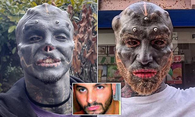 Anthony Loffredo, 32, has already covered his body – including his eyeballs – in tattoos and had his tongue split in his bid to look like a ‘black alien,’ The Mirror reported.