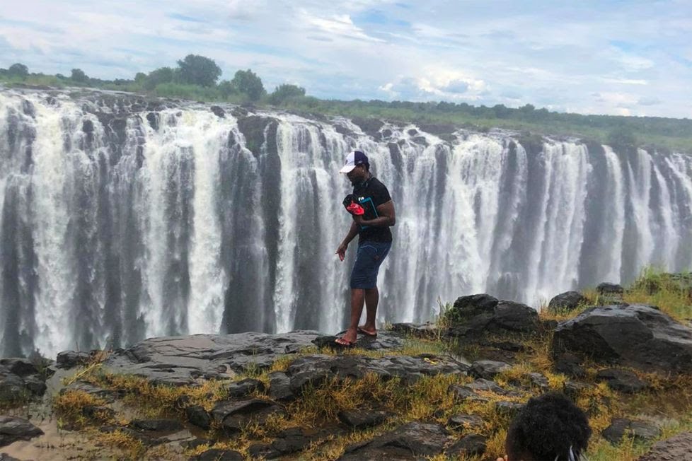 Roy George Tinashe Dikinya, 40, was taking turns with his family to take photos from the top of the huge waterfall when he tumbled over the edge, witnesses told Zimbabwe’s Newsday.