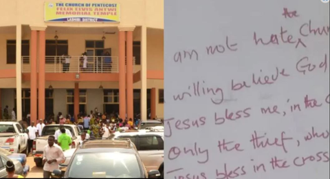 TSB NEWS reports that A thief who stole from the Church of Pentecost-English Assembly in the Bogoso District of the Western Region, Ghana left a touching note to explain his actions.
