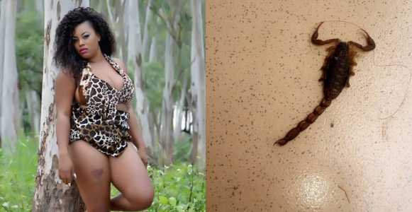 Nollywood actress, Peggy Onah, has taken to her Instagram page to share a photo and reveal how she found a dead scorpion in her room.