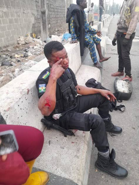 Policeman knocked down by hit and run driver in Lagos (Photos)