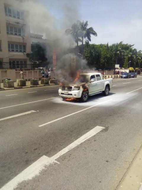 Panic as vehicle catches fire near Abuja Ministry of Justice
