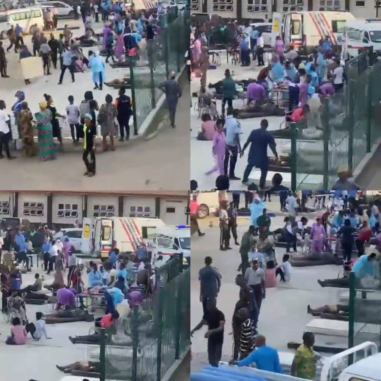 Video of victims of the Train/Bus accident being laid on the floor outside the Lagos State University Teaching Hospital