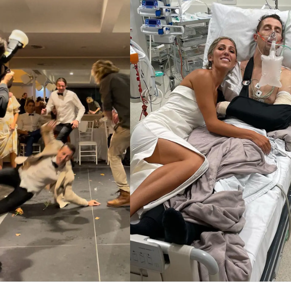 Groom Adam Quinn ends up in hospital on wedding night after suffering horrific injuries while trying to show bride how…