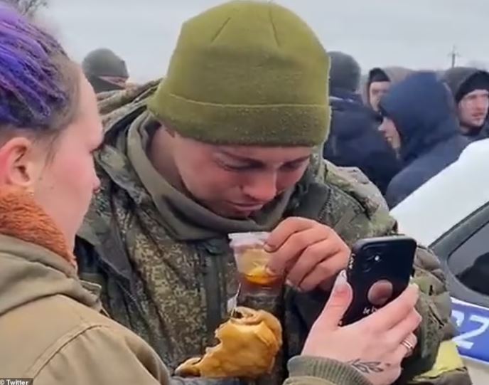 Russian soldier breaks down in tears when locals gave him tea and called his mother after he surrendered