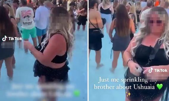 Bizarre moment woman sprinkles ‘her brother’s ashes’ into swimming pool packed with revellers at Ibiza club (Video)