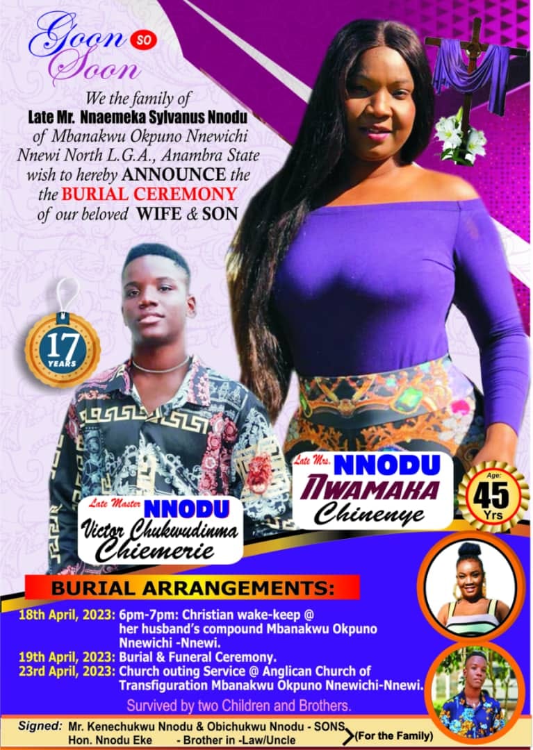 Nigerian woman Nwamaka Chinenye Nnodu and her 17-year-old son Victor Chukwudimma Chimezie die