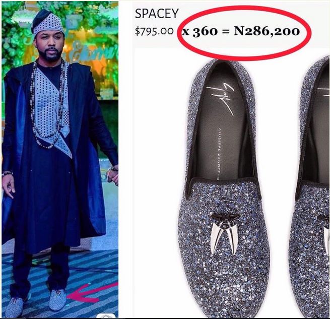 Singer And Actor,Banky W rocked a giuseppe zanotti ”Spacey” footwear worth $795.00 for his traditional wedding with actress Adesua Etomi…