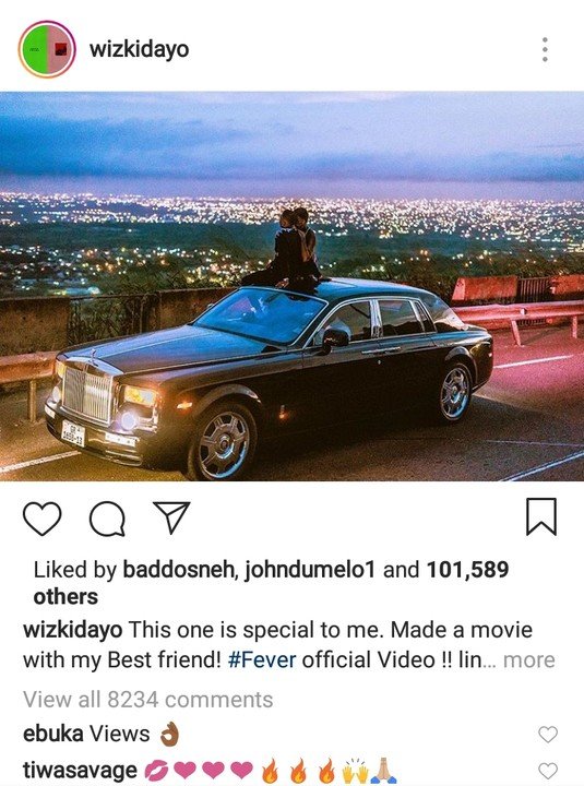 As shared by Tiwa Savage and Wizkid on Instagram moments ago after the release of their video ‘Fever’.
