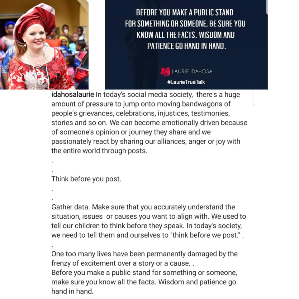Read MorePastor Laurie Idahosa shared this on her Instagram page this morning. Thoughts?