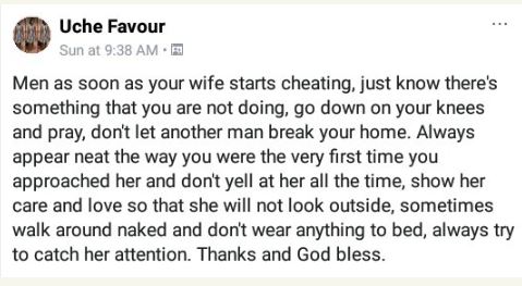 Ships “Don’t Wear Anything To Bed” – Nigerian Lady Advises Men With Unfaithful Wives TSB News May 8, 2018 0 A Nigerian lady identified as Uche Favour on Facebook took to her Facebook page to advise men on what to… Read More