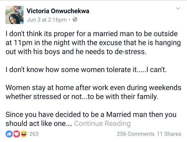 Inside Life Nigerian Woman Rants About The Recklessness Of Some Married Men TSB News Jun 5, 2017 0 As posted by Victoria Unwuchekwa. Do you agree with her? See the rest of her rants below Read More